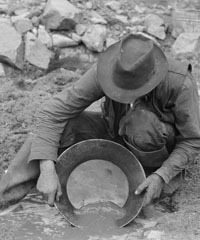 There's gold in them there hills! Prospectors looking for gold. Some are historical recreations.